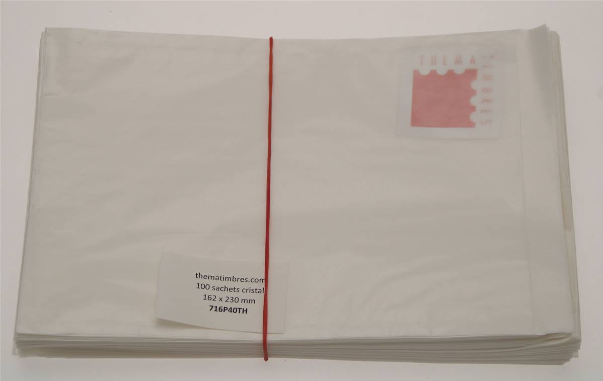 100 sachets en papier cristal 162 x 230 mm + 20 mm de rabat