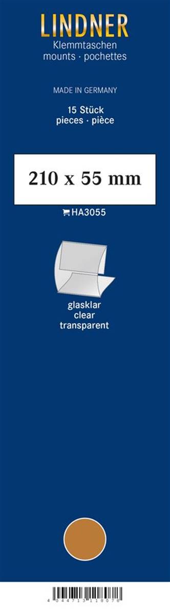 15 bandes Lindner double soudure fond transparent 210 x 55 mm HA3055