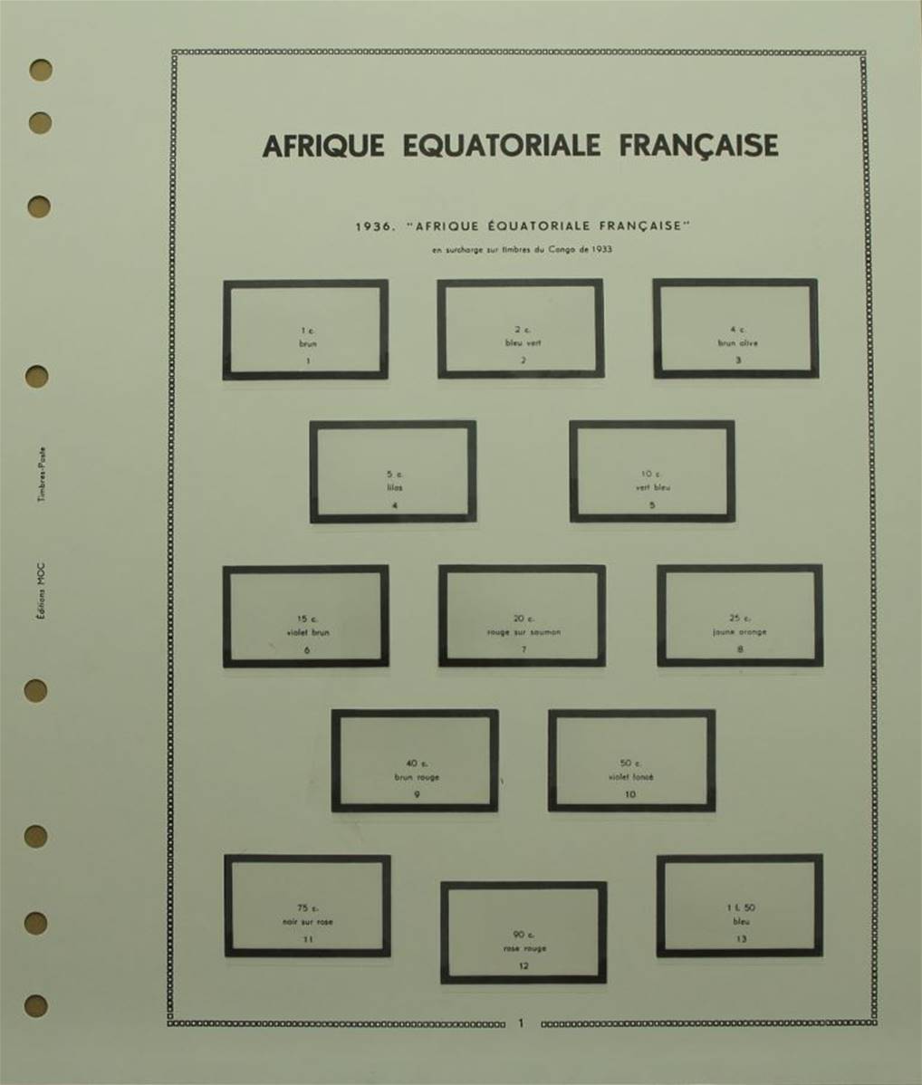 30 pages pour les timbres émis en AEF de 1936 à 1958