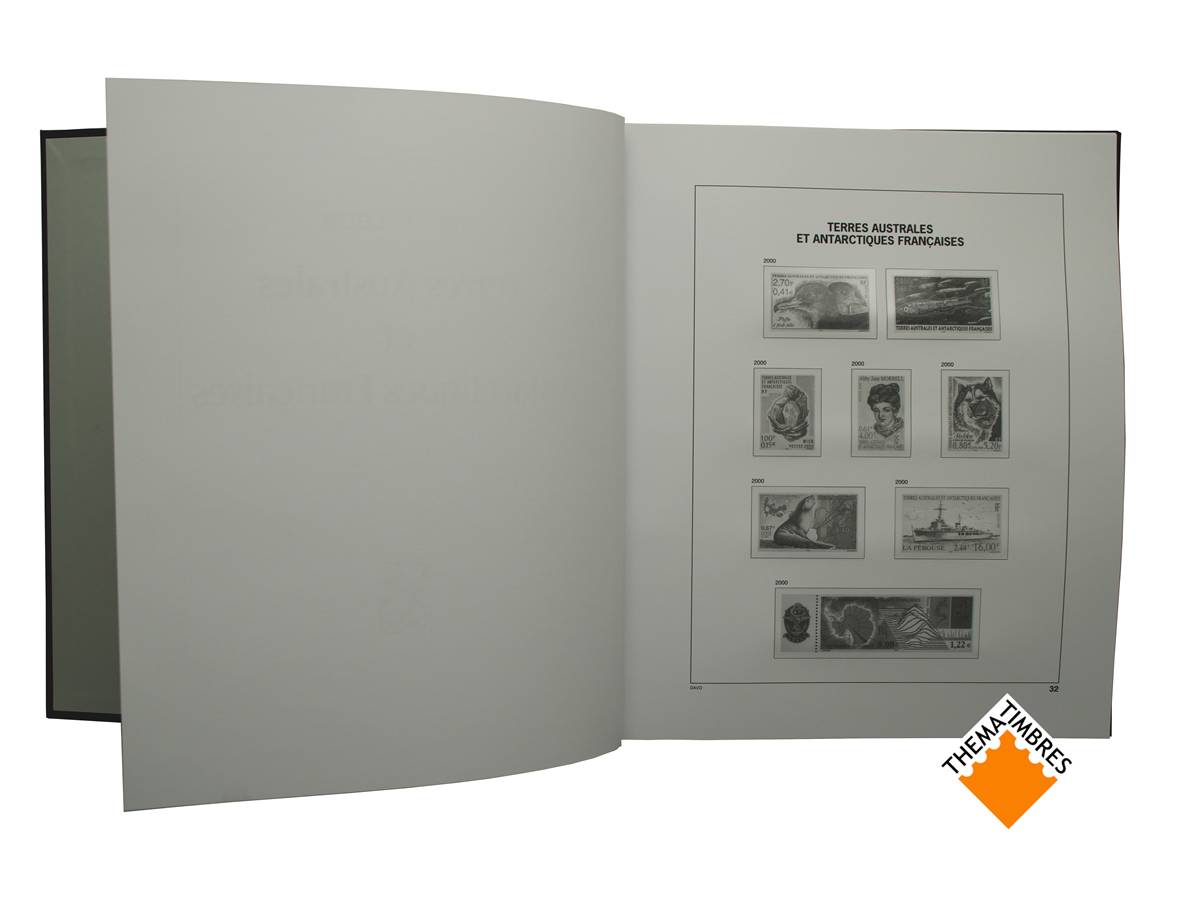 L'album LUXE TAAF II est composé de la reliure avec etui assorti et des feuilles des année 2000 à 2017. Les timbres sont reproduits en noir et blanc sur une feuille Bristol (170g/m2). Les timbres se glissent dans des pochettes transparentes dépourvues de plastifiant.
