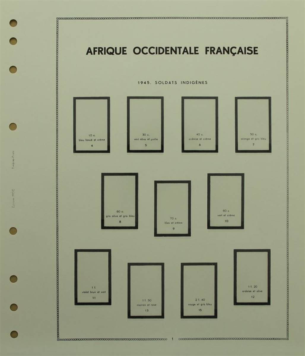 Interieur MOC avec pochettes pour les timbres poste de l ' AOF Afrique Occidentale Francaise émis de 1944 à 1959 reference 310144