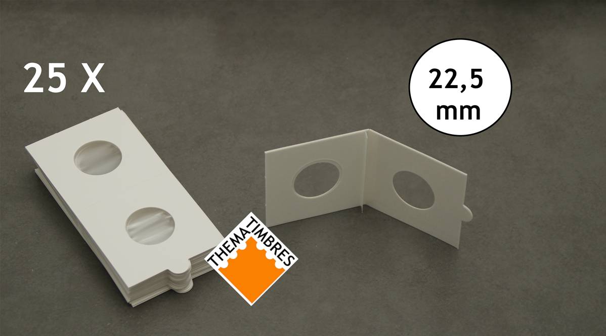 boite de 25 étuis numismatiques carton HB autocollants 22.5 mm pour pièces Hartberger 8320225 ID1653