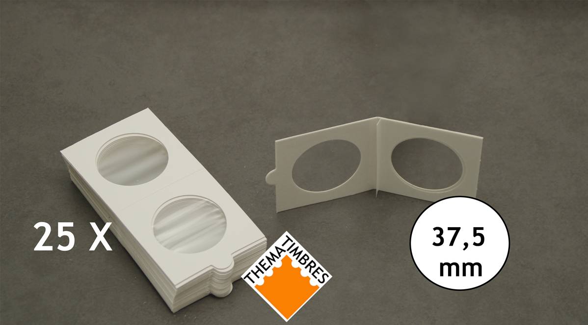 boite originale de 25 étuis numismatiques carton autocollants avec fenêtre transparente diamètre 35 mm.