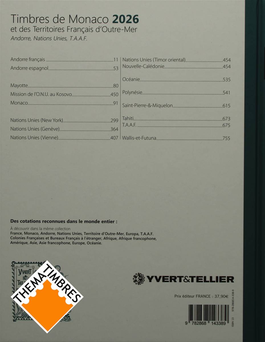 Catalogue de cotation des Timbres de Monaco et Territoires Français d Outre Mer 2026 Yvert et Tellier 138993