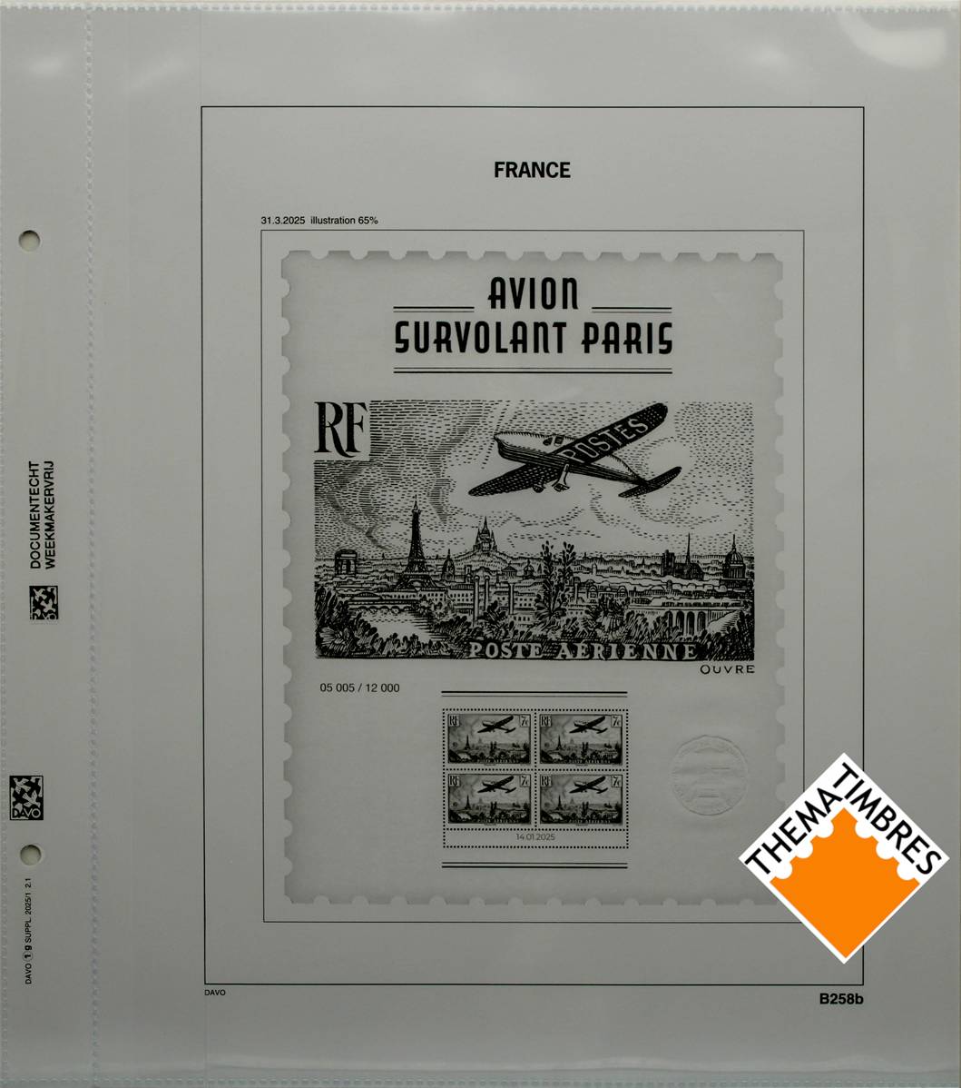 2 pages pour les blocs à tirage limités émis en 2025, affiche avion survolant Paris et centenaire de l'exposition internationale