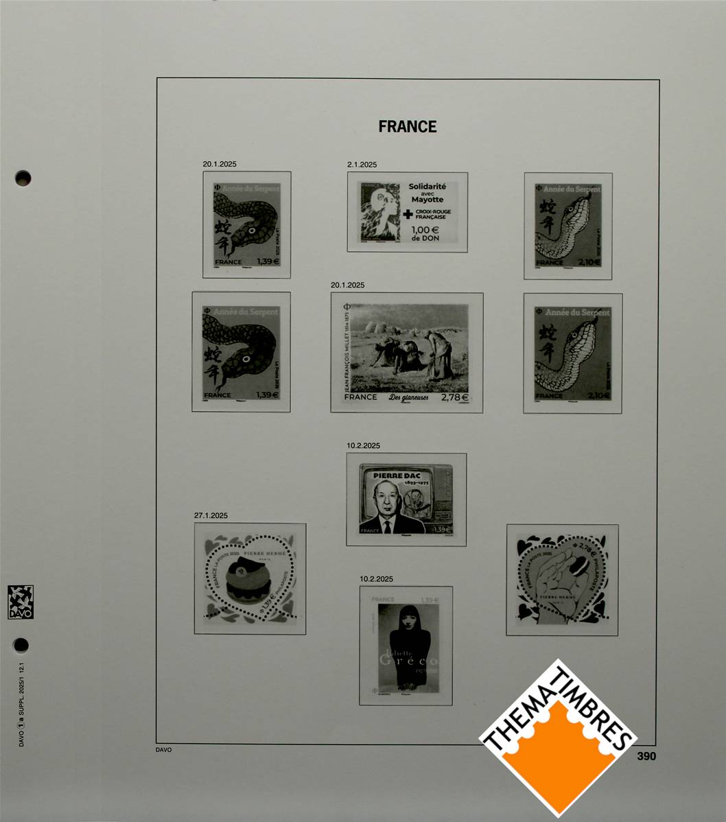 Feuilles 1 ace Luxe avec pochettes pour les timbres de France du 1er semestre 2025 DAVO 37155