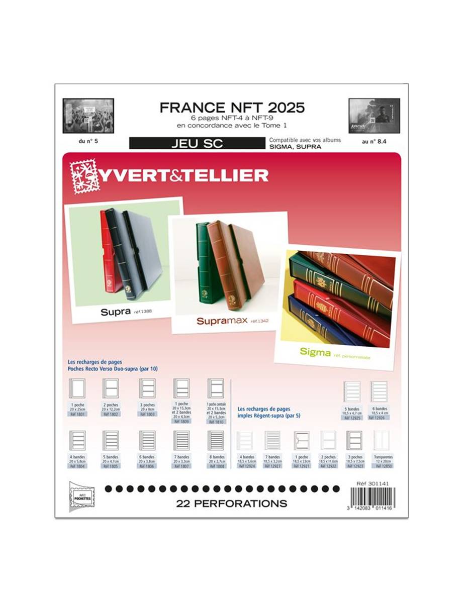 Les pages du jeu SC sont compatibles avec les reliures SUPRA et SIGMA à 22 anneaux et SUPRAMAX à 8 anneaux.