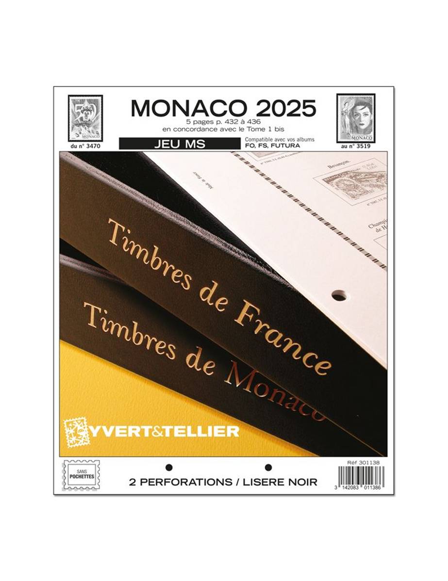 5 pages (432 à 436) pour les timbres émis en 2025 (du numéro 3470 au numéro 3519) par la Principauté de Monaco