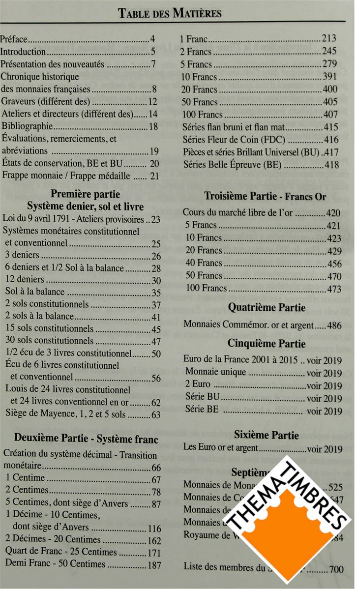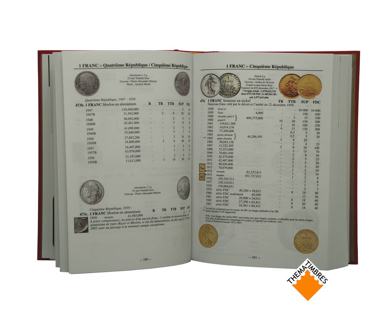 Toutes les monnaies françaises reproduites en couleur avers et revers, de nouvelles photos de monnaies rares, cotées pour 4 états de conservation.