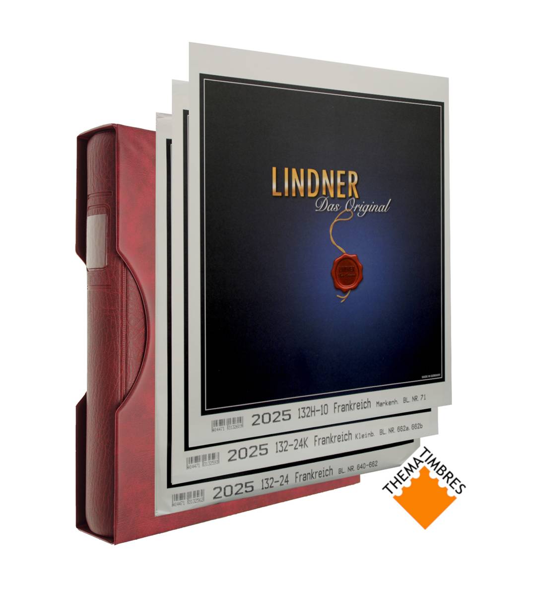 Offre Spéciale pour les timbres de France y compris carnets et petits blocs de 2025 avec un ensemble reliure et boîtier bordeaux 1124 LINDNER T T132-25ES